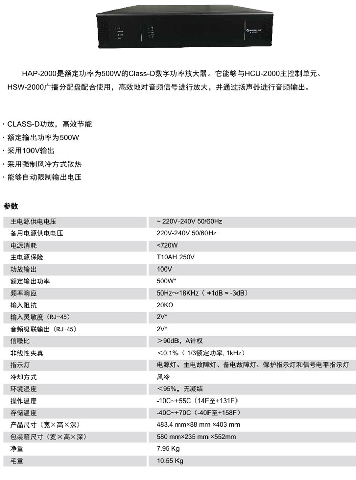 HAP-2000 500W 数字功率放大器