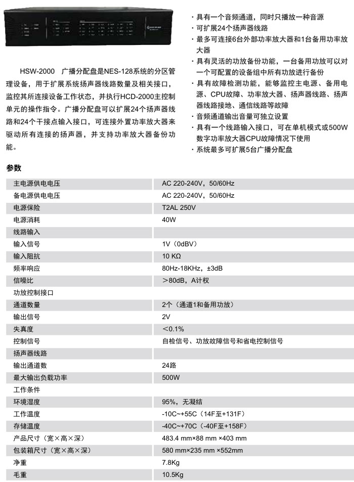HSW-2000 广播分配盘