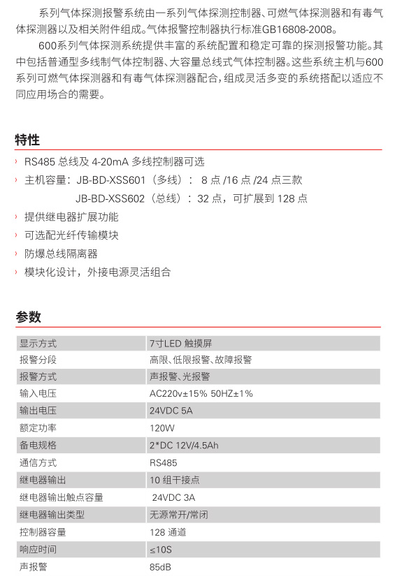 JB-BD-XSS601/XSS602 可燃气体报警控制器