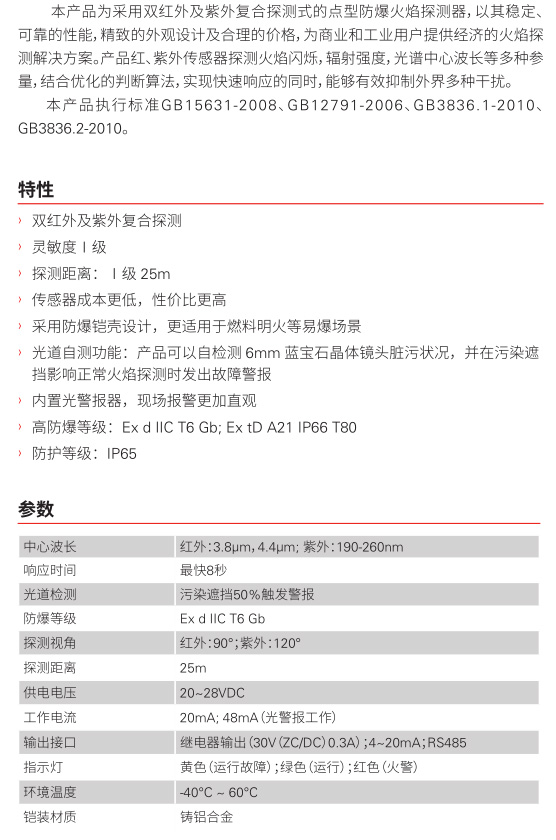JTGB-UF-XSS666 点型红紫外复合型火焰探测器