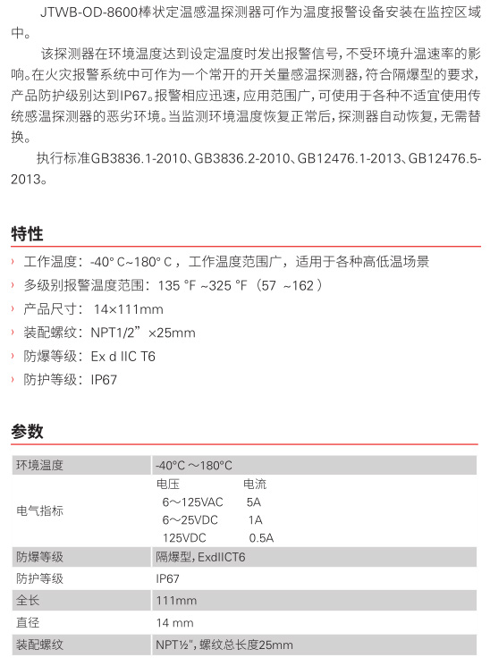 JTWB-OD-8600 棒状定温感温探测器