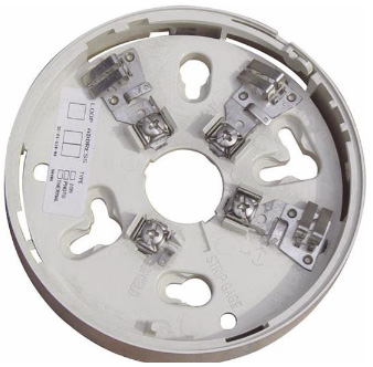 B501嵌入式探测器底座用于智能系统,提供有电源(+)()以及远程显示(门灯)连接的螺钉端子。通过电源(+)()线进行通讯。