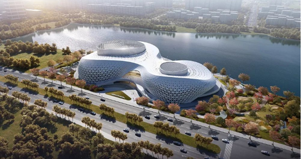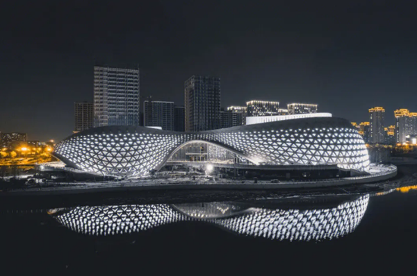 杭州金沙湖大剧院是钱塘区目前规模最大、功能最全、设施最完善的大型公益性文化综合体,坐落于杭州中心城区的繁荣板块。金沙湖大剧院由我国著名建筑大师程泰宁院士(CCTN筑境设计)设计,总建筑面积约4.4万平方米,集文化交流、会演会展、艺术创作、休闲活动于一体,分为标准剧场、综合小剧场两大功能区域,可容纳约2000人。大剧院的建筑风格新颖别致,柔性界面沿金沙湖起伏舞动,宛如柔软的绸缎,充分利用区域优势,尊重自然与城市环境,最大限度的发挥金沙湖及沿岸公园的景观优势,并与周边城市达到良好互动。在满足建筑功能的同时,为周边城市居民提供一处自由开放的可进行文化交流、观景休闲活动的城市公共空间。向市民传达着文化与艺术的意蕴。